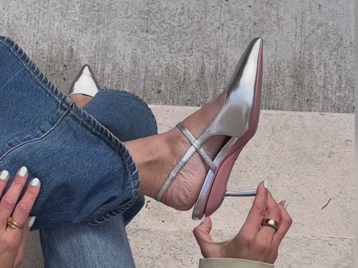 Gösterişli bir tokalı slingback ayakkabı, VICE VERSA dokunuşuyla tasarlanmış. Bu zarif, sivri burunlu topuklu model, slingback arkası, ön kayışı ve iç kısmındaki yastıklamalarla dikkat çekiyor. Gümüş deriden el işçiliğiyle üretilen bu topuklu, mükemmel bir günlük ayakkabıdır.