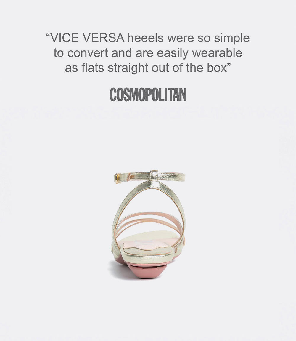 Metalik deri ile yapılan Vine Convertible Heel, zarif askılar ve rahat bir bilek kayışıyla zahmetsiz şıklık sunan şık bir sandalet. VICE VERSA'nın imza convertible topu ile tasarlanmış olan bu model, saniyeler içinde şık bir topukludan şık bir düziğe dönüşebilir.